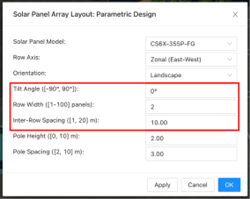 | Solar panel row width (RW) | Each row of solar panels may have multiple sub-rows. A wider row casts a longer shadow. | ![]() |